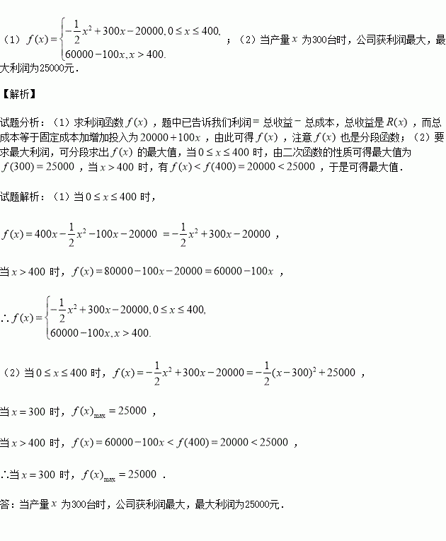 某公司生产一种电子仪器的固定成本为20000元,每生产一台仪器需增加投入100元,已知总收益函数是