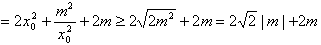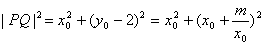 (1)若曲线y=f(x)上的点P到点Q(0,2)的距离的最小值为,求m的值;