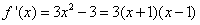 ∴f(x)的单调递增区间是;单调递减区间是(-1,1)。