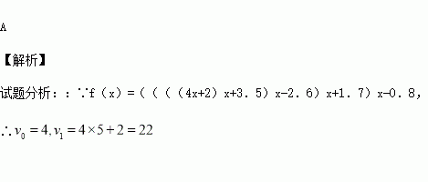 已知多项式f(x)=4x5+2x4+3.5x3﹣2.6x2+1.7x﹣0.8,用秦九韶算法算f(5)时的V1值为( )
