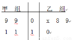 以下茎叶图记录了甲,乙两组各四名同学的植树棵树,乙组记录中有一个数据模糊,无法确认,在图中以X表示。