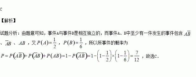3”为事件B,则事件A,B中至少有一件发生的概率是( )