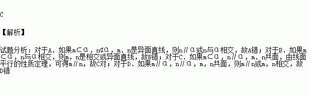 D.如果m∥α,n∥α,m、n共面,那么m∥n