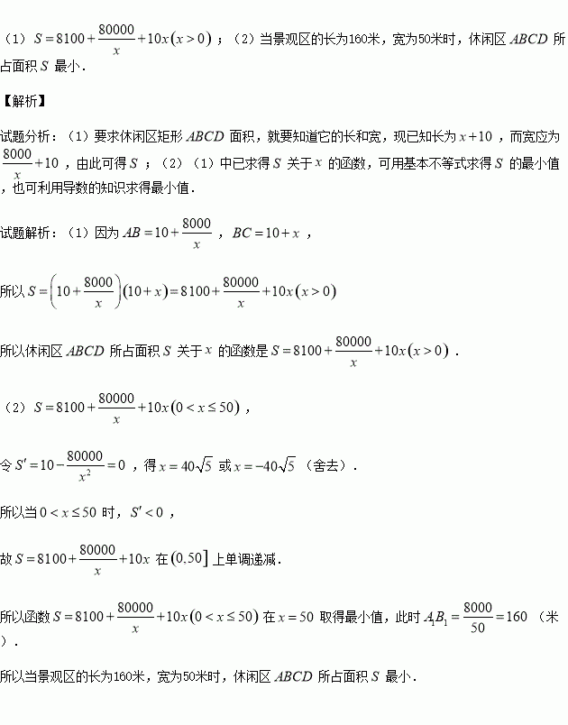 的长度不能超过50米,如何设计景观区的长和宽,才能使休闲区