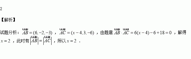 在空间直角坐标系中,以点A(4,1,9),B(10,-1,6),C(x,4,3)为顶点的△ABC是以BC为斜边的等腰直角三角形,则实数x的值为 .