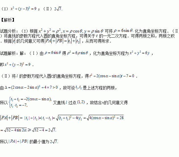 (t为参数),在极坐标系(与直角坐标系xOy取相同的长度单位,且以原点O为极点,以x轴非负半轴为极轴)中,圆C的方程为?=6sin?.