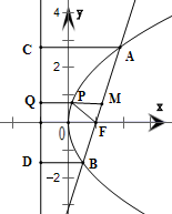 ∵过AB的中点M作准线的垂线与抛物线交于点P,