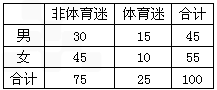 将日均收看该体育节目时间不低于40分钟的观众称为“体育迷”,已知“体育迷”中有10名女性.