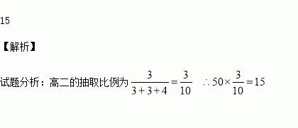 某学校高一、高二、高三年级的学生人数之比为3:3:4,现用分层抽样的方法从该校高中三个年级的学生中抽取容量为50的样本,则应从高二年级抽取 名学生.