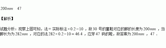 从上述表格中可以推算出30号的童鞋对应的脚的长度为____;若一个篮球运动员的脚长为282