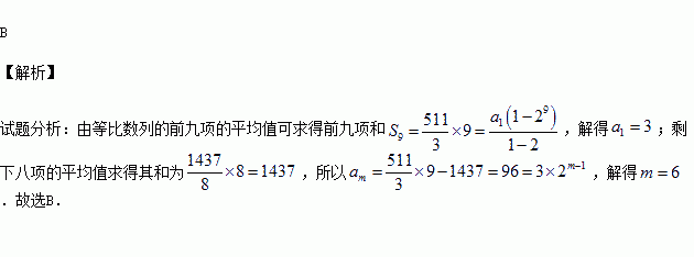 已知等比数列{an}的公比q=2,它的前9项的平均值等于