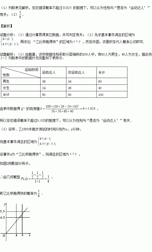 列联表中的数据补充完整,并通过计算判断能否在犯错误概率不超过0.025的前提下认为性别与“是否为‘运动达人’”有关;