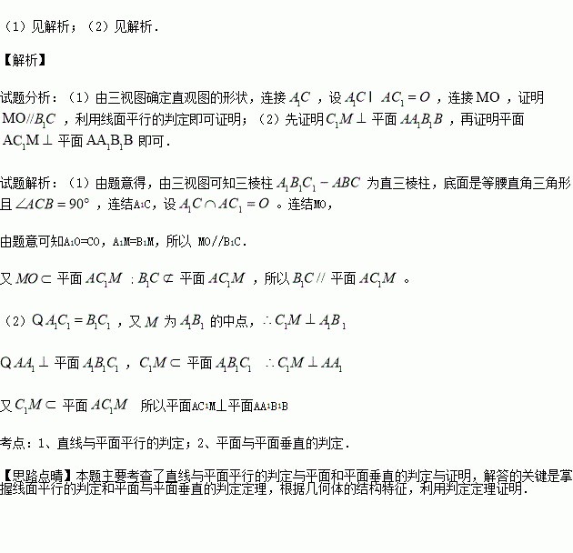 (2)求证:平面AC1M⊥平面AA1B1B.