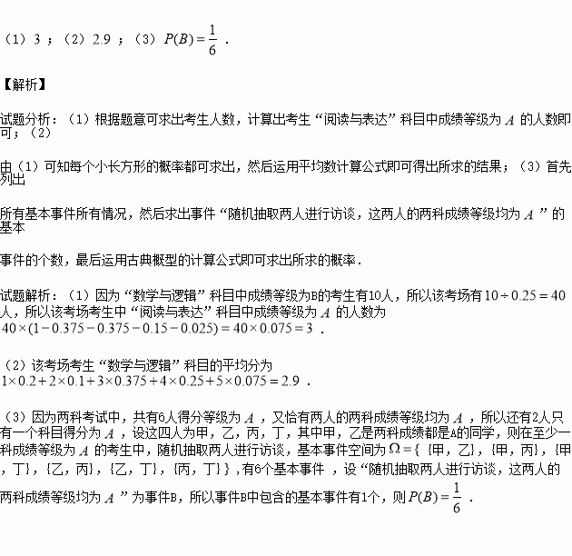 (1)求该考场考生中“阅读与表达”科目中成绩为