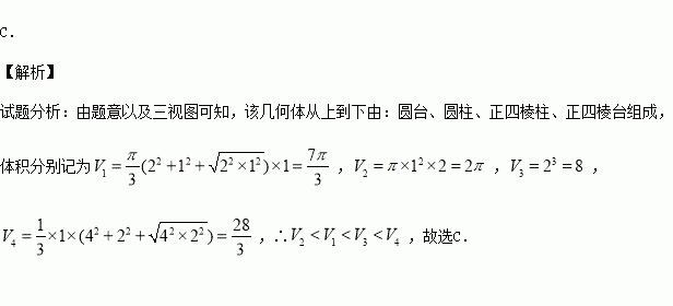 一个几何体的三视图如图所示,该几何体从上到下由四个简单几何体组成,其体积分别记为