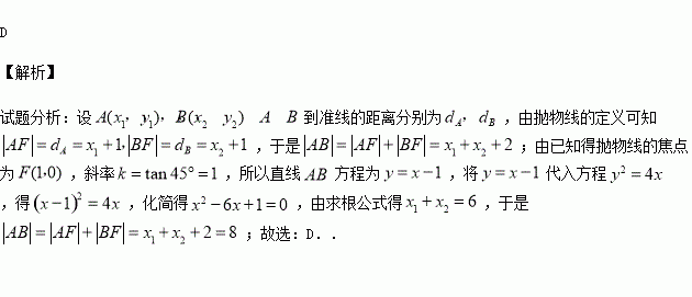 的焦点F,且与抛物线相交于A,B两点,则弦AB的长为( )