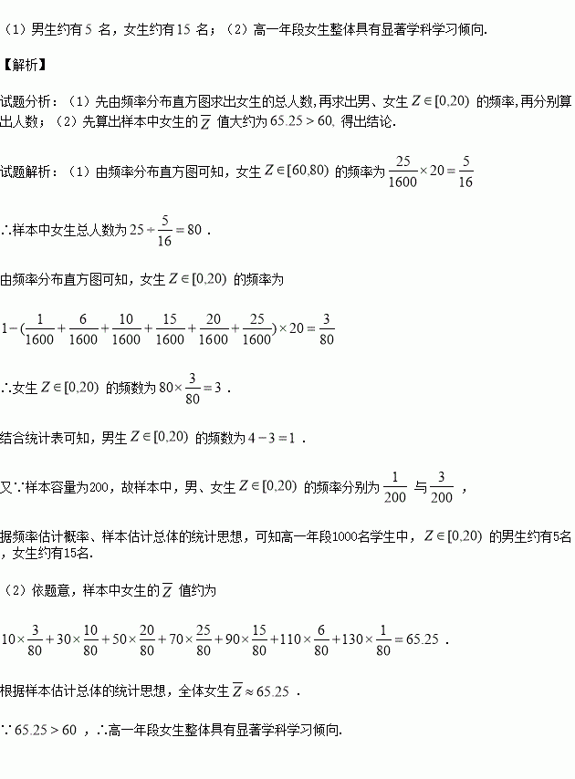 称为整体具有学科学习倾向,试估计高一年段女生的