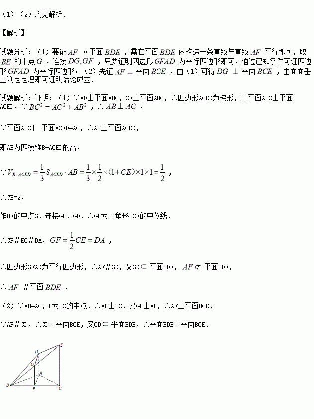 如图所示,AD⊥平面ABC,CE⊥平面ABC,AC=AD=AB=1,