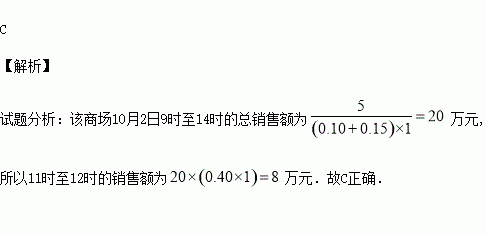 税在十一期间异常火爆,现对某商场10月2日9时至14时的销售额进行统计,其频率分布直方图如图所示,已知9时至11时的销售额为5万元,则11时至12时的销售额为( )