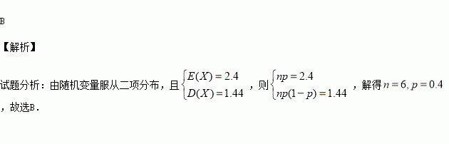 已知随机变量X服从二项分布,且E(X)=2.4,D(X)=1.44,则二项分布的参数n,p的值为( )