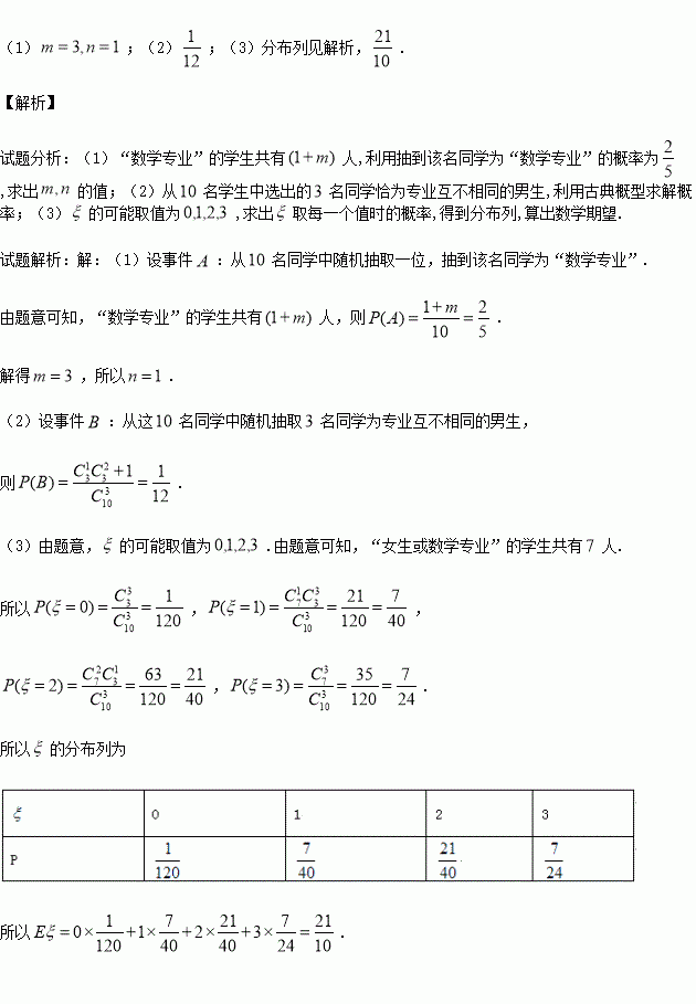 名同学中“女生或数学专业”的学生的人数,求随机变量