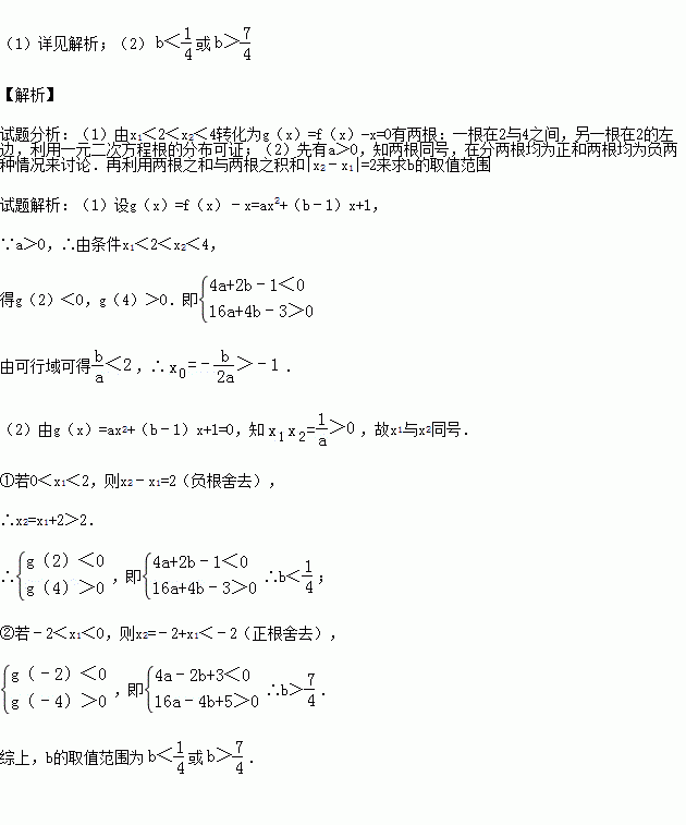 (2)如果|x1|<2,|x2﹣x1|=2,求b的取值范围.