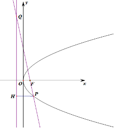 解:过P做PH⊥准线,垂足为H,则丨PH丨=丨PF丨,