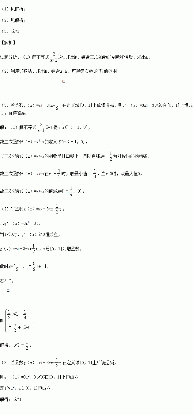 的解集,其值域为A,函数g(x)=x3﹣3tx+