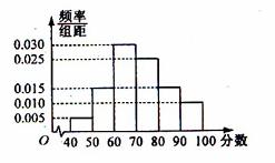 某校从高一年级学生中随机抽取部分学生,将他们的模块测试成绩分为6组:[40,50), [50,60), [60,70), [70,80), [80,90), [90,100)加以统计,得到如图所示的频率分布直方图,已知高一年级共有学生600名,据此估计,该模块测试成绩不少于60分的学生人数为( )