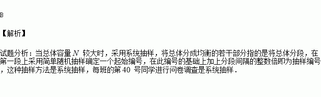 求每班第40号同学留下来进行问卷调查,这里运用的抽样方法是( )
