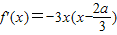 解答:解:(Ⅰ)∵f'(x)=-3x2+2ax(1分),