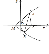分析 如图所示,设A(x1,y1),B(x2,y2).直线AB的方程为my=x+t(m≠0).与抛物线方程联立可得y2-8my+8t=0,得到根与系数的关系,由于x轴平分∠AMB,可得kMA+kMB=0,$\frac{{y}_{1}}{{x}_{1}+1}+\frac{{y}_{2}}{{x}_{2}+1}$=0,化为t=-1.利用弦长公式可得:|AB|=$\sqrt{(1+{m}^{2})[({y}_{1}+{y}_{2})^{2}-4{y}_{1}{y}_{2}]}$,F(2,0)到直线AB的距离d=$\frac{1}{\sqrt{1+{m}^{2}}}$,再利用S△FAB=$\frac{1}{2}|AB|•d$及其二次函数的单调性即可得出.