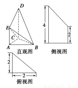 若下图为某直三棱柱(侧棱与底面垂直)被削去一部分后的直观图与三视图中的侧视图、俯视图,则其正视图的面积为 ,三棱锥