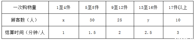 某超市为了解顾客的购物量及结算时间等信息,安排一名员工随机收集了在该超市购物的100位顾客的相关数据,如下表所示.