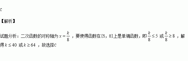 若函数f(x)=4x2-kx-8在[5,8]上是单调函数,则k的取值范围是( )