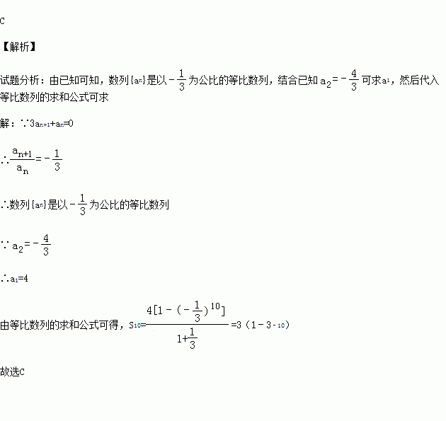 已知数列{an}满足3an+1+an=0,a2=﹣