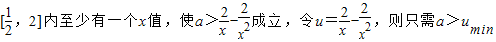 则说明在内至少有一个x值,使不等式ax2-2x+2>0,即,