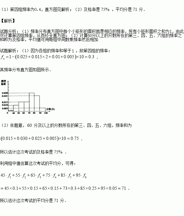 分及以上为及格)和平均分.