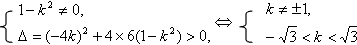 | (2)依题意,可设直线l的方程为y=kx+2,代入双曲线C的方程并整理得 (1-k2)x2-4kx-6=0 ① ∵直线l与双曲线C相交于不同的两点E、F, ∴ ∴k∈(- 设E(x1,y1),F(x2,y2), 则由①式得x1+x2= 于是|EF|= = 而原点O到直线l的距离d= ∴S△DEF= 若△OEF面积不小于2 解得 综合②、③知,直线l的斜率的取值范围为[- |