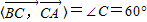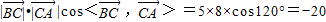 【答案】分析:在△ABC中,a=5,b=8,C=60°中=120°然后用数量积求值即可.
