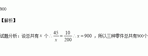 有A、B、C三种零件,其中B种零件300个,C种零件200个,采用分层抽样方法抽取一个容量为45的样本,A种零件被抽取20个, C种零件被抽取10个,三种零件总共有________个。