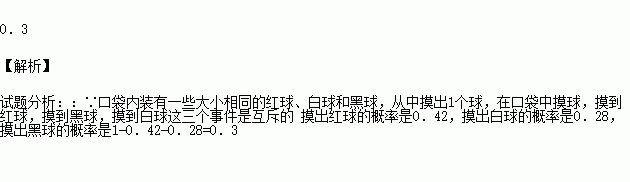 口袋内装有一些大小相同的红球、白球和黒球,从中摸出个球,摸出红球的概是摸出白球的概率是,那么摸出黒球的概率是 .