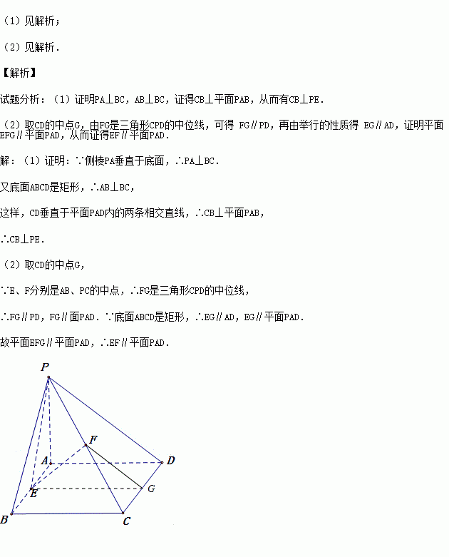 (2015秋•盐城校级月考)如图,四棱锥P﹣ABCD中,PA⊥平面ABCD,底面ABCD为矩形,E,F分别为棱AB,PC的中点