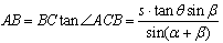 如图,测量河对岸的塔高AB时,可以选与塔底B在同一水平面内的两个测点C与D。现测得∠BCD=α,∠BDC=β,CD=s,并在点C测得塔顶A的仰角为θ,求塔高AB。
