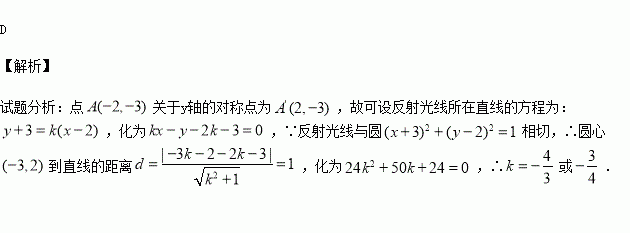 相切,则反射光线所在直线的斜率为( )