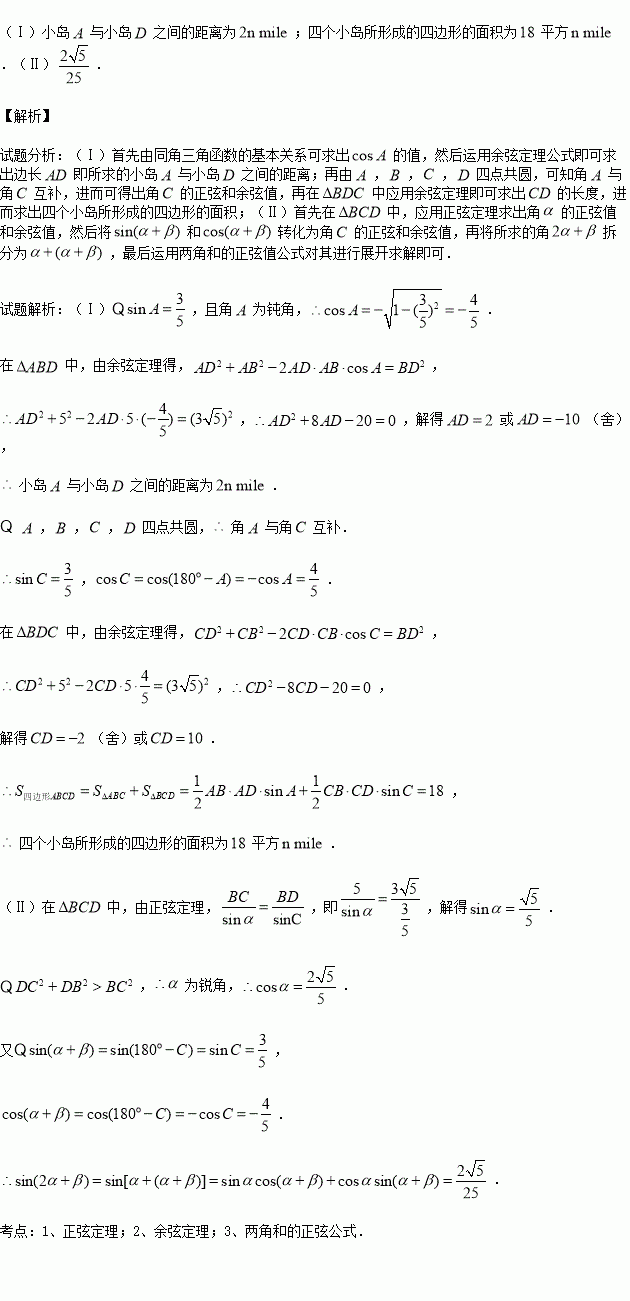 (本小题满分12分)如图,我国南海某处的一个圆形海域上有四个小岛,小岛