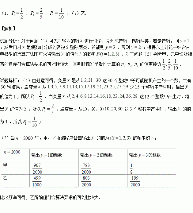 的频率(用分数表示),并判断甲、乙中谁所编写的程序符合算法要求的可能性较大.
