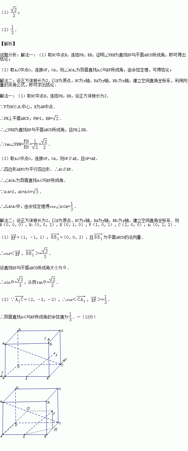 (2013秋•成都期中)如图,正方体ABCD﹣A1B1C1D1中,E为AB中点,F为正方形BCC1B1的中心.