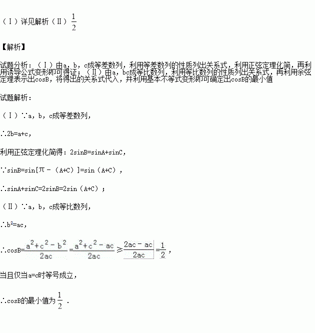 (Ⅱ)若a,b,c成等比数列,求cosB的最小值.