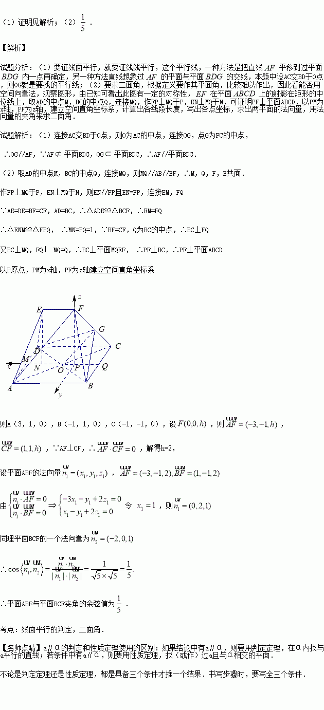 (2)求平面ABF与平面BCF夹角的余弦值.